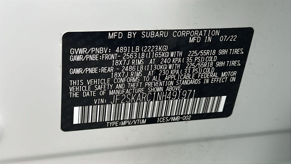 - Front tires: 225/55HR18.0