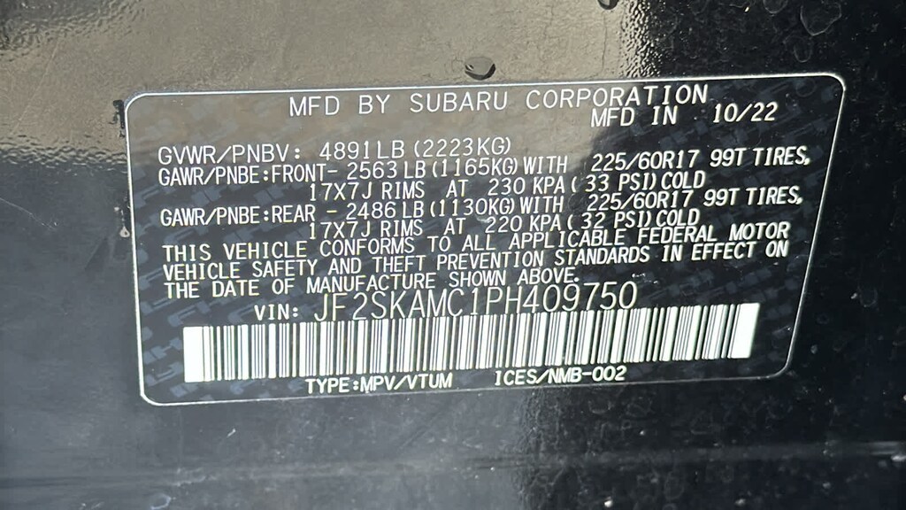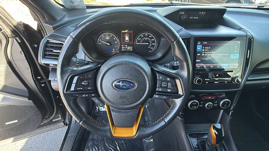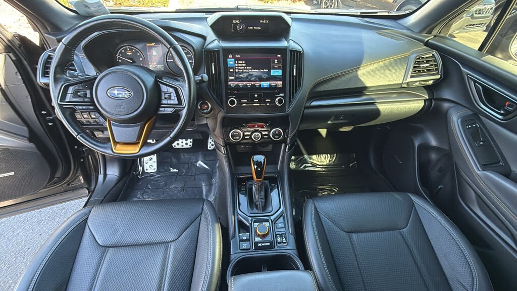 8 AUDIO W/harman/kardon® & POWER REAR GATE Power Rear Gate, automatic close and height memory, Radio: Subaru Starlink 8.0 Multimedia Nav System, AM/FM stereo HD Radio w/single-disc CD player, MP3/WMA/CRR/RW file capability, multi-touch gesture high resolution display screen, voice activated controls, Bluetooth® audio streaming, hands-free phone connectivity and hands-free SMS text messaging connectivity (refer to subaru.com for cell phone compatibility), Near Field Communication (NFC), iPod control capability, SiriusXM All Access radio (4 months free trial/subscription required after), smartphone integration for AHA, Android Auto®, Apple CarPlay®, Pandora and Starlink cloud applications (refer to subaru.com for app availability), USB and Over The Air (OTA) audio system update, steering wheel, AUTO-DIMMING MIRROR W/COMPASS & HOMELINK Part number H501SSJ000. Subaru Wilderness with Crystal Black Silica exterior and Gray interior features a 4 Cylinder Engine with 182 HP at 5800 RPM*.