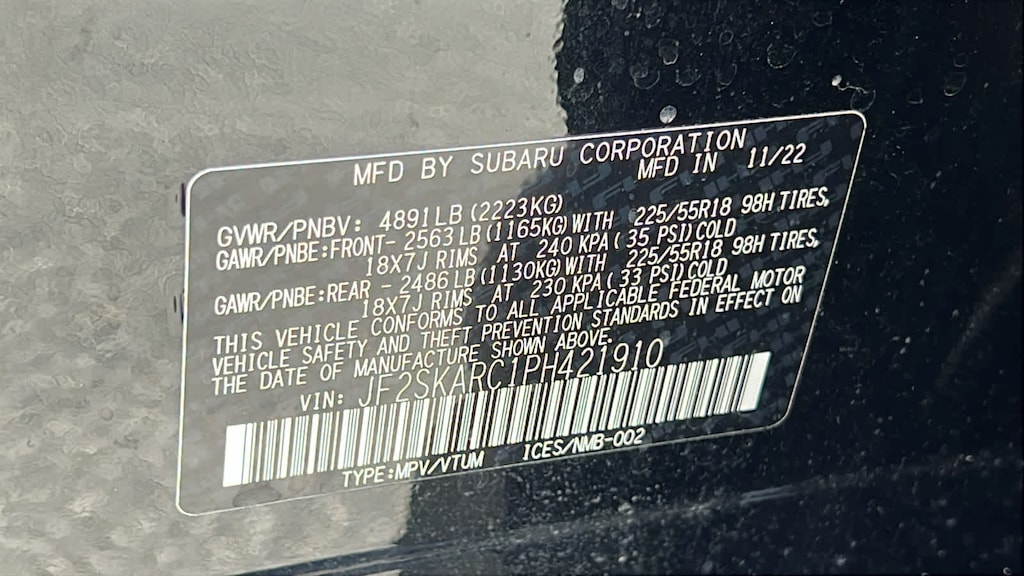 - Front tires: 225/55HR18.0