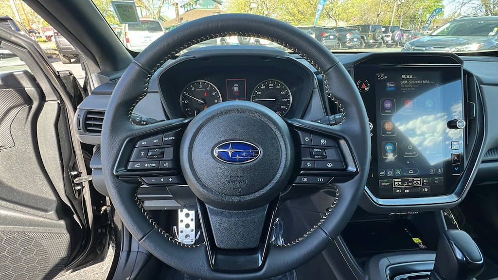 BSD/RCTA & POWER DRIVER SEAT & POWER MOONROOF automatic emergency steering, system off switch, BSD/RCTA detection indicator exterior power mirrors, rear radar detection sensors and lane change assist, Rear Cross-Traffic Alert (RCTA) System, off and malfunction warning indicator and audible vehicle detection warning, 10-Way Power Drivers Seat, 2-way lumbar support, Blind Spot Detection (BSD), Power Moonroof, tilt up and internal retracting w/auto-open/close and laminated, UV and dark tint moonroof glass, AERO CROSSBAR SET. Subaru Sport with Crystal Black Silica exterior and Gray interior features a 4 Cylinder Engine with 182 HP at 5800 RPM*.