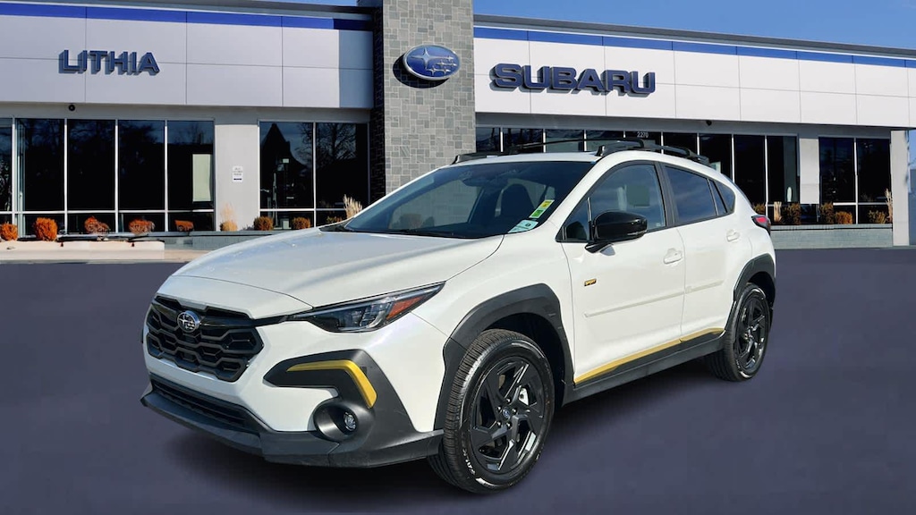 BSD/RCTA & POWER DRIVER SEAT & POWER MOONROOF automatic emergency steering, system off switch, BSD/RCTA detection indicator exterior power mirrors, rear radar detection sensors and lane change assist, Rear Cross-Traffic Alert (RCTA) System, off and malfunction warning indicator and audible vehicle detection warning, 10-Way Power Drivers Seat, 2-way lumbar support, Blind Spot Detection (BSD), Power Moonroof, tilt up and internal retracting w/auto-open/close and laminated, UV and dark tint moonroof glass, AERO CROSSBAR SET. Subaru Sport with Crystal White Pearl exterior and Gray interior features a 4 Cylinder Engine with 182 HP at 5800 RPM*.