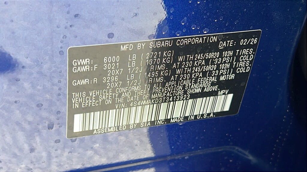 AUTO-DIMMING EXTERIOR MIRROR W/APPROACH LIGHT. Subaru Touring with Sapphire Blue Pearl exterior and Slate Black w/Blk Stitch interior features a 4 Cylinder Engine with 260 HP at 5600 RPM*.
