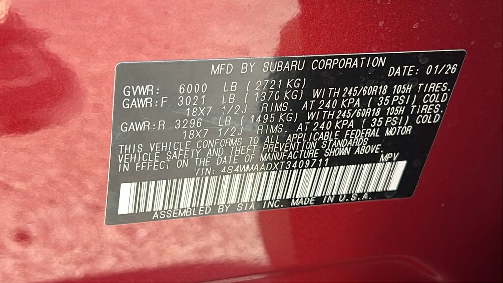 AUTO-DIMMING EXTERIOR MIRROR W/APPROACH LIGHT. Subaru Premium with Crimson Red Pearl exterior and Black interior features a 4 Cylinder Engine with 260 HP at 5600 RPM*.