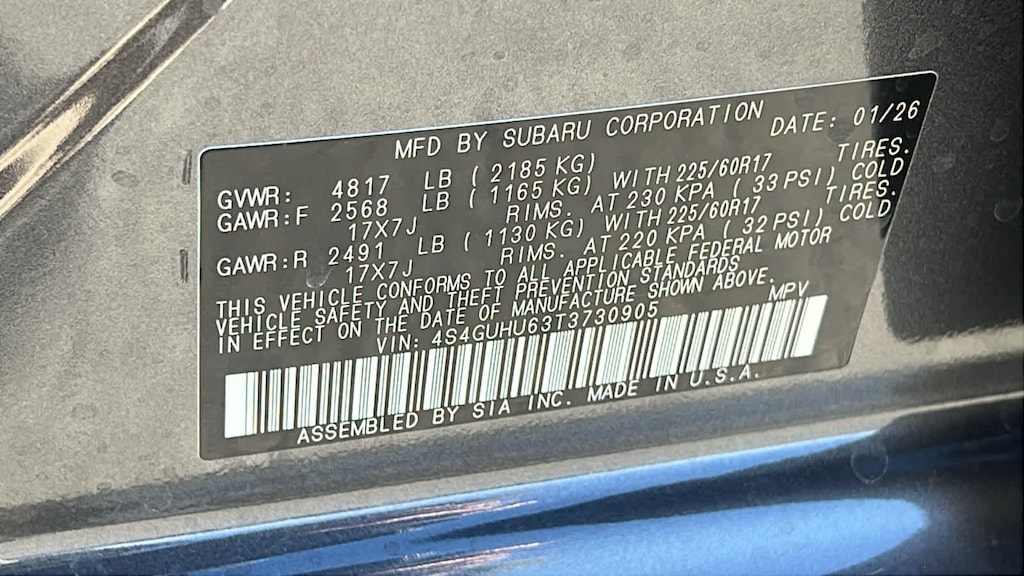- 4S4GUHU63T3730905