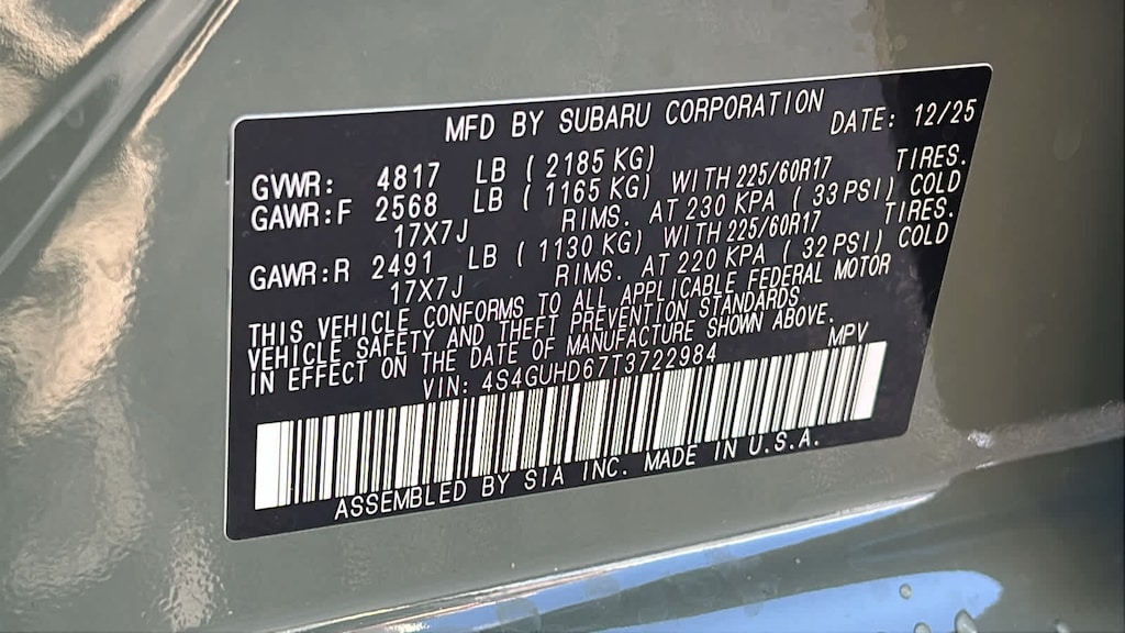 CONVENIENCE PACKAGE #2 Auto-Dimming Mirror w/Compass & HomeLink, Splash Guards, Rear Bumper Cover. Subaru Premium with Alpine Green exterior and Black interior features a 4 Cylinder Engine with 180 HP at 5800 RPM*.