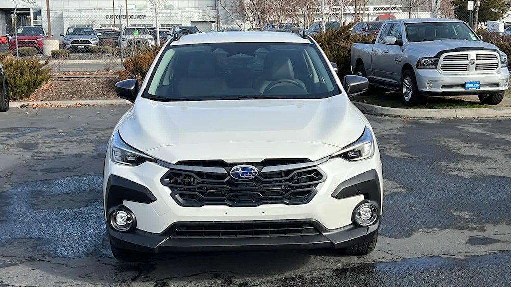 CROSSTREK MIRROR PACKAGE Auto-Dimming Mirror w/Compass & HomeLink, Auto-Dimming Exterior Mirror w/Approach Light. Subaru Limited Hybrid with Crystal White Pearl exterior and Gray w/Orange Stitch interior features a 4 Cylinder Engine with 194 HP at 5600 RPM*.