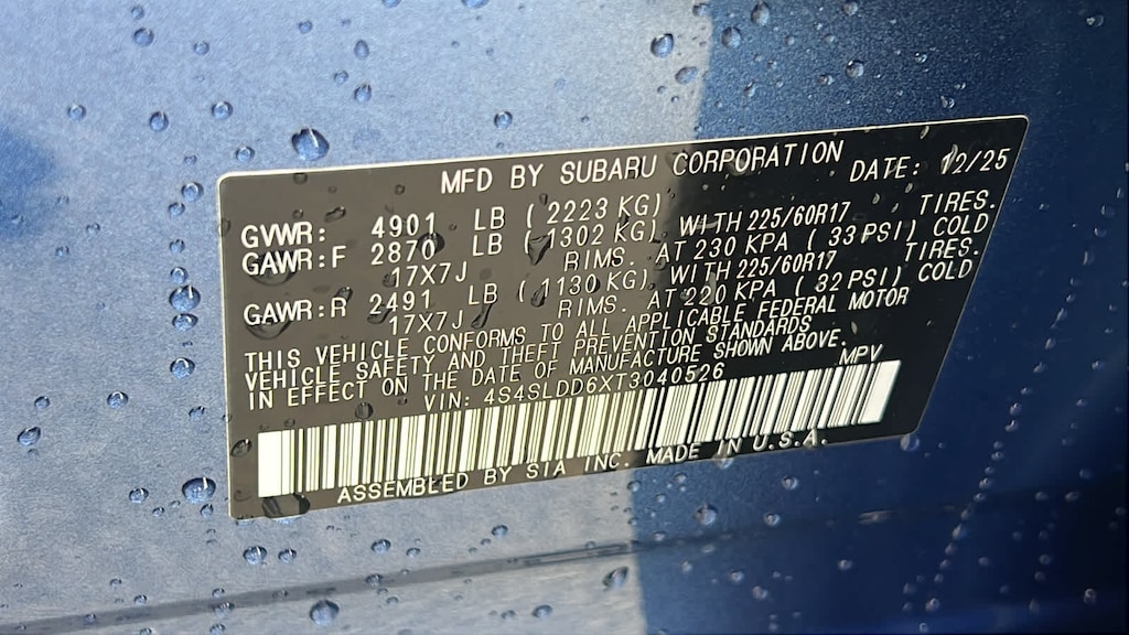 - 4S4SLDD6XT3040526