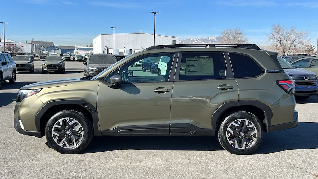 POWER REAR GATE & BLIND SPOT DETECTION W/RCTA Automatic Emergency Steering, Blind-Spot Detection (BSD)/RCTA System, BSD/RCTA detection indicator exterior power mirrors, rear radar detection sensors, lane change assist and audible vehicle detection warning rear cross-traffic alert, Power Rear Gate, automatic close and height memory, hands-free foot activation sensor, hand pressure sensing automatic close and illuminated close and lock switch, Emergency Lane Keep Assist, AUTO-DIMMING MIRROR W/COMPASS & HOMELINK. Subaru Premium with Autumn Green Metallic exterior and Black interior features a 4 Cylinder Engine with 180 HP at 5800 RPM*.