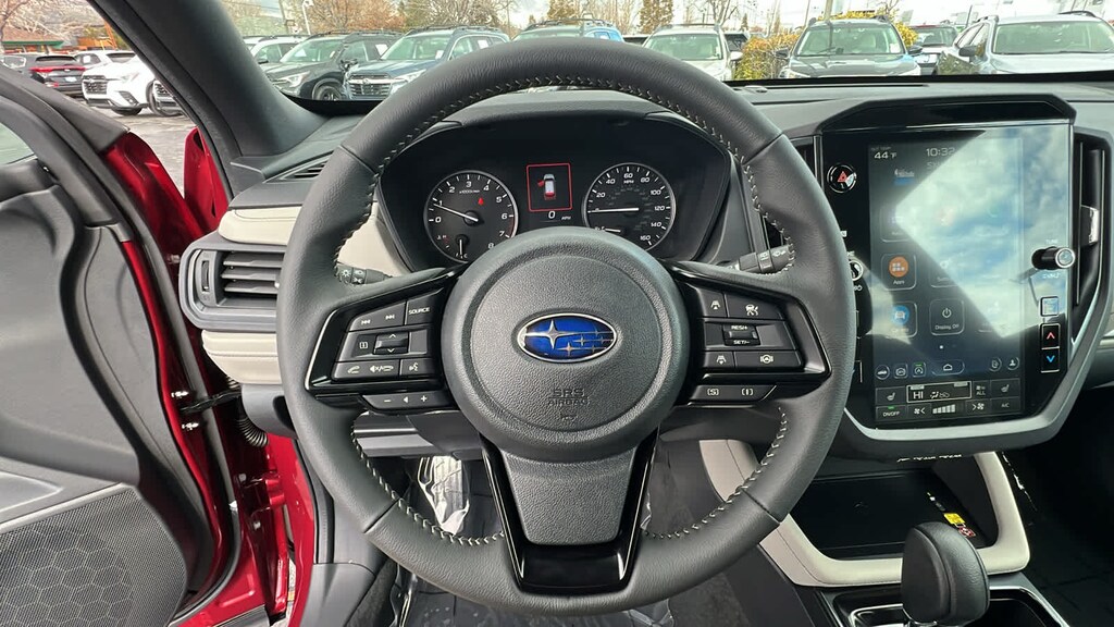 POWER REAR GATE & BLIND SPOT DETECTION W/RCTA Automatic Emergency Steering, Blind-Spot Detection (BSD)/RCTA System, BSD/RCTA detection indicator exterior power mirrors, rear radar detection sensors, lane change assist and audible vehicle detection warning rear cross-traffic alert, Power Rear Gate, automatic close and height memory, hands-free foot activation sensor, hand pressure sensing automatic close and illuminated close and lock switch, Emergency Lane Keep Assist, AUTO-DIMMING MIRROR W/COMPASS & HOMELINK. Subaru Premium with Crimson Red Pearl exterior and Gray interior features a 4 Cylinder Engine with 180 HP at 5800 RPM*.