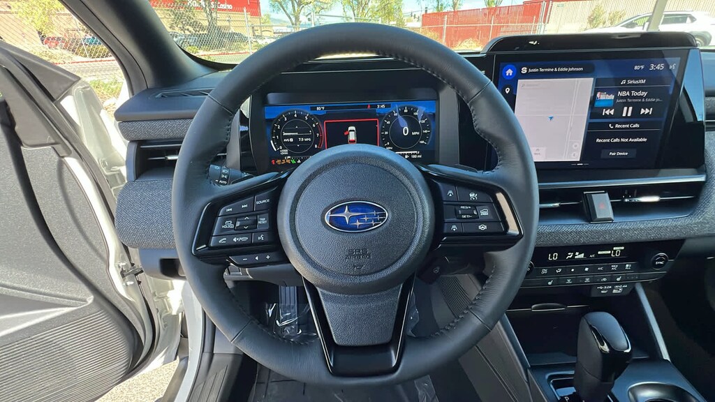 NAVIGATION & HEATED STEERING WHEEL & MOONROOF Partial Heated Steering Wheel, Power Moonroof, tilt up and internal retracting w/auto-open/close and laminated, UV, dark tinted glass, Wireless Charger, Rain Sensor Windshield Wipers, Radio: Subaru 12.1 Multimedia System w/Navigation, AM/FM stereo, HD Radio, valet mode, multi-touch gesture high resolution display screen, voice activated controls, voice activated navigation, Bluetooth® audio streaming and hands-free phone connectivity w/SMS text messaging (refer to subaru.com for cell phone compatibility), TomTom navigation software w/what3words, smartphone integration for Android Auto® and Apple CarPlay® w/full screen view and wireless connection, USB (CCU only) and Over The Air (OTA) audio system update, audio system, hands-free phone and voice, AUTO-DIMMING MIRROR W/COMPASS & HOMELINK and H501SFN001, bulk kit bag. Subaru Premium with Crystal White Pearl exterior and Titanium Gray interior features a 4 Cylinder Engine with 180 HP at 5800 RPM*.