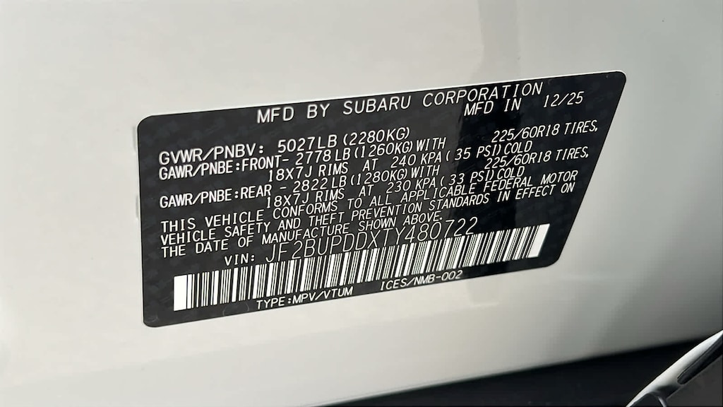 - Front tires: 225/60HR18.0