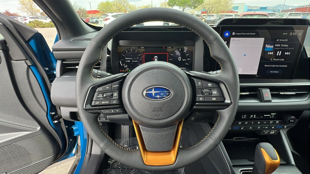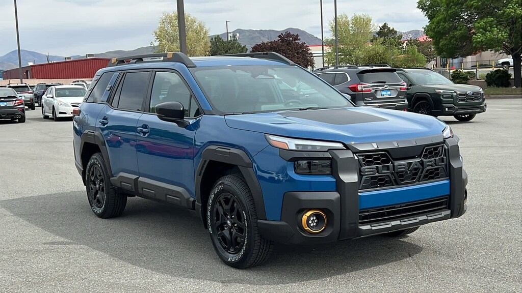 MOONROOF & NAV & SURROUND VIEW MONITOR & VENT SEATS Power Moonroof, tilt up and internal retracting w/auto-open/close and laminated, UV, dark tinted glass, Surround View Monitor, Heated & Ventilated Front Bucket Seats, 12-way power drivers seat w/4-way power lumbar and 2 position memory, seat bottom cushion extension: forward length adjustment, 8-way power front passenger seat, height adjustable head restraints, multi-purpose seatback pocket and whiplash reducing protection, Radio: Subaru 12.1 Multimedia System w/Navigation, AM/FM stereo, HD Radio, valet mode, multi-touch gesture high resolution display screen, voice activated controls, voice activated navigation, Bluetooth® audio streaming and hands-free phone connectivity w/SMS text messaging (refer to subaru.com for cell phone, EXTERIOR/INTERIOR AUTO DIMMING HL MIRRORS Auto-Dimming Exterior Mirror w/Approach Light, Auto-Dimming Mirror w/Compass & HomeLink and H501SAN000. Subaru Wilderness with Geyser Blue exterior and Slate Black interior features a 4 Cylinder Engine with 260 HP at 5600 RPM*.