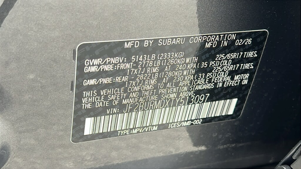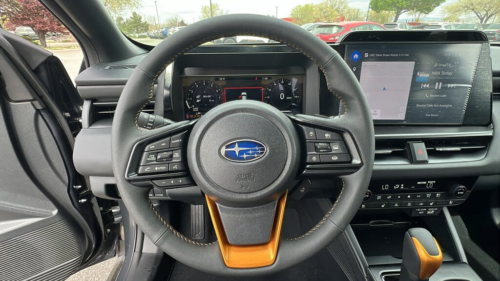 MOONROOF & NAV & SURROUND VIEW MONITOR & VENT SEATS Power Moonroof, tilt up and internal retracting w/auto-open/close and laminated, UV, dark tinted glass, Surround View Monitor, Heated & Ventilated Front Bucket Seats, 12-way power drivers seat w/4-way power lumbar and 2 position memory, seat bottom cushion extension: forward length adjustment, 8-way power front passenger seat, height adjustable head restraints, multi-purpose seatback pocket and whiplash reducing protection, Radio: Subaru 12.1 Multimedia System w/Navigation, AM/FM stereo, HD Radio, valet mode, multi-touch gesture high resolution display screen, voice activated controls, voice activated navigation, Bluetooth® audio streaming and hands-free phone connectivity w/SMS text messaging (refer to subaru.com for cell phone, EXTERIOR/INTERIOR AUTO DIMMING HL MIRRORS Auto-Dimming Exterior Mirror w/Approach Light, Auto-Dimming Mirror w/Compass & HomeLink and H501SAN000. Subaru Wilderness with Magnetite Gray Metallic exterior and Slate Black interior features a 4 Cylinder Engine with 260 HP at 5600 RPM*.