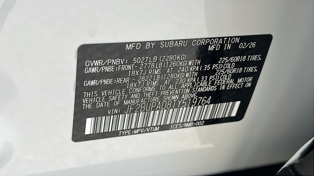 - JF2BUPAD8TY519764