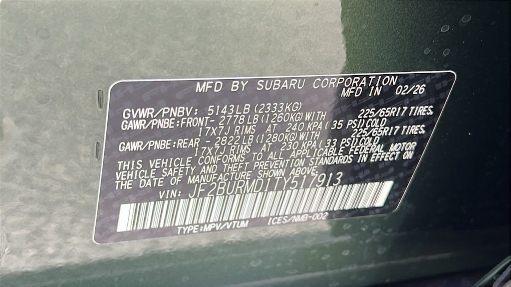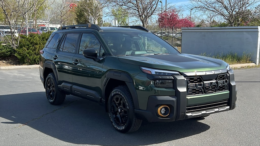 MOONROOF & NAV & SURROUND VIEW MONITOR & VENT SEATS Power Moonroof, tilt up and internal retracting w/auto-open/close and laminated, UV, dark tinted glass, Surround View Monitor, Heated & Ventilated Front Bucket Seats, 12-way power drivers seat w/4-way power lumbar and 2 position memory, seat bottom cushion extension: forward length adjustment, 8-way power front passenger seat, height adjustable head restraints, multi-purpose seatback pocket and whiplash reducing protection, Radio: Subaru 12.1 Multimedia System w/Navigation, AM/FM stereo, HD Radio, valet mode, multi-touch gesture high resolution display screen, voice activated controls, voice activated navigation, Bluetooth® audio streaming and hands-free phone connectivity w/SMS text messaging (refer to subaru.com for cell phone, EXTERIOR/INTERIOR AUTO DIMMING HL MIRRORS Auto-Dimming Exterior Mirror w/Approach Light, Auto-Dimming Mirror w/Compass & HomeLink and H501SAN000. Subaru Wilderness with Deep Emerald Green Pearl exterior and Slate Black interior features a 4 Cylinder Engine with 260 HP at 5600 RPM*.