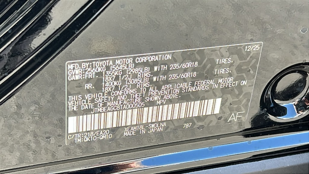 - Rear tires: 235/60VR18.0
