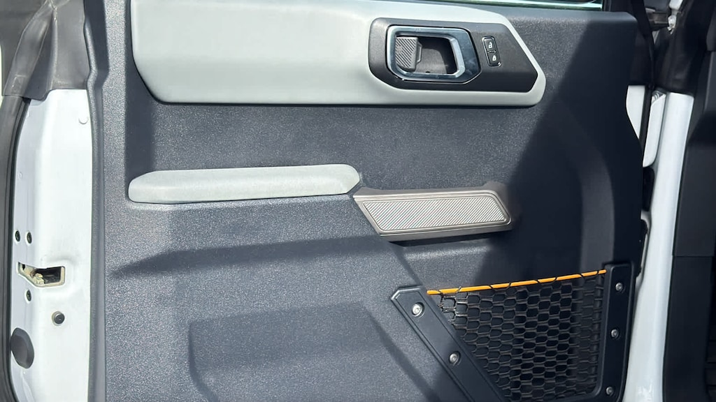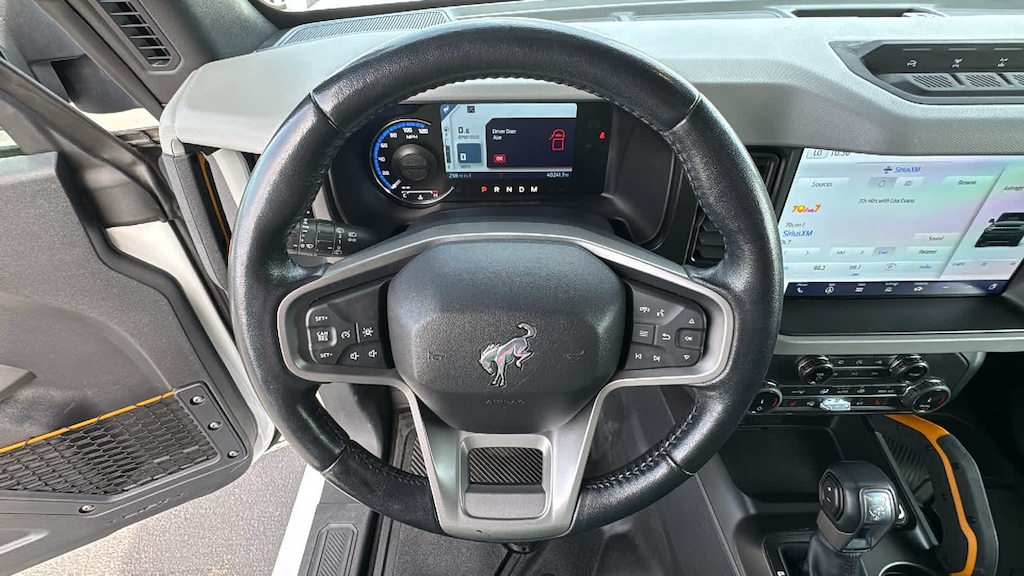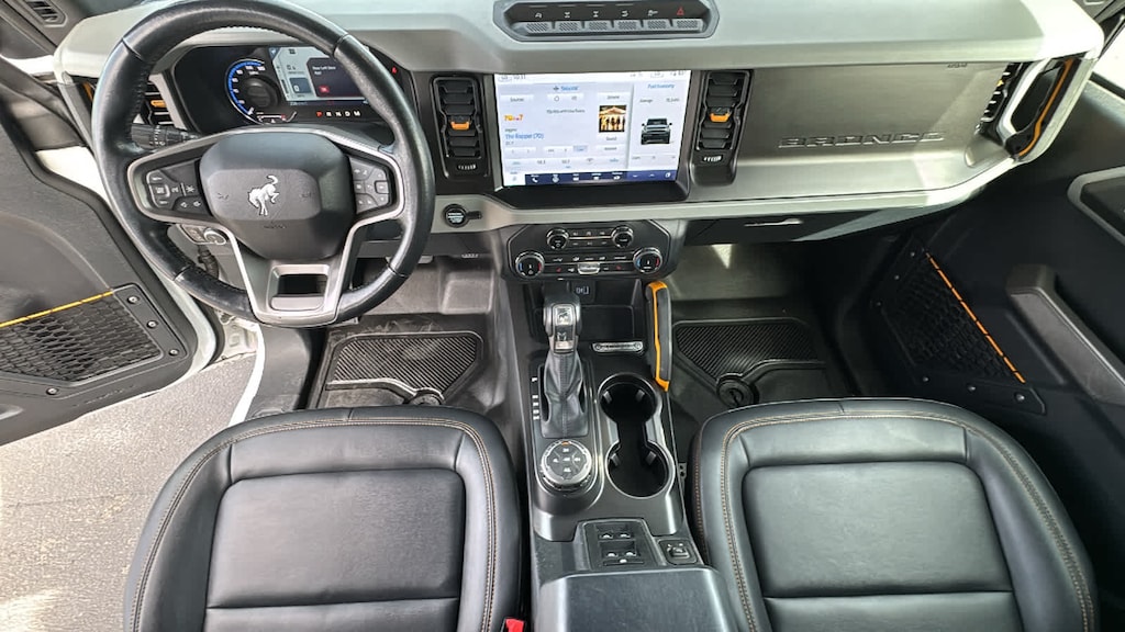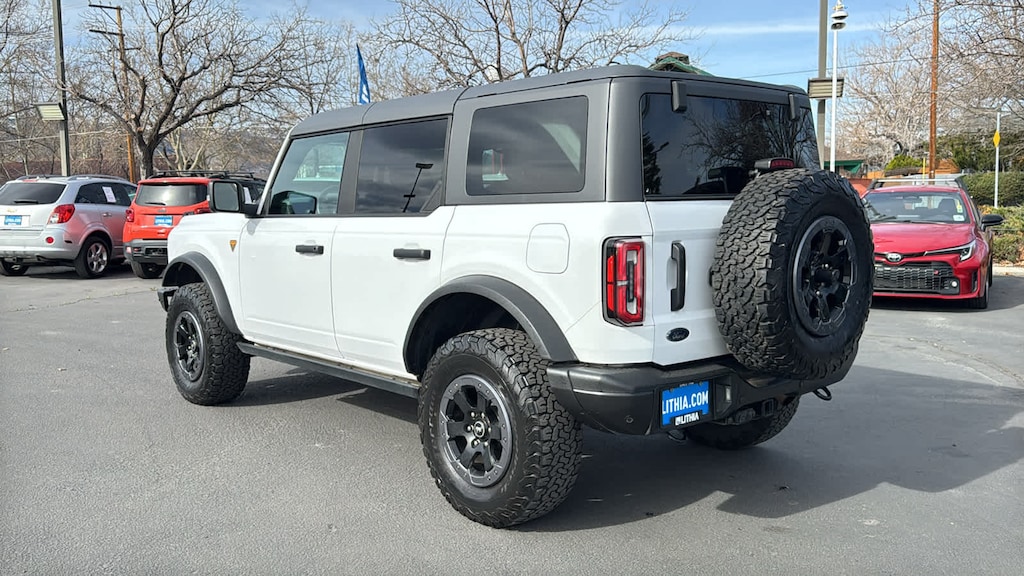 EQUIPMENT GROUP 333A HIGH PACKAGE Rear Parking Sensors, Power Outlet - Back Side of Center Floor Console, 12 LCD Capacitive Touchscreen w/Swipe Capability, Front Row Heated Seats, Auto-Dimming Interior Rearview Mirror, Dr & Pass Illuminated Sliding Visor Vanity Mirrors, Additional Sound Deadening, Information on Demand Panel, Dual-Zone Electronic Automatic Temperature Control, air conditioning, Ford Co-Pilot360, Enables compatibility w/FordPass performance app w/off-road navigation, Auto High-Beam Headlamps, Pre-Collision Assist w/Automatic Emergency Braking, pedestrian detection, forward collision warning and dynamic brake support, Blind Spot Information System (BLIS), Cross-Traffic Alert, Rear View Camera, backup assist grid lines, Lane-Keeping System, Lane-Keeping Alert, Lane-Keeping, ENGINE: 2.7L ECOBOOST V6 electric brake boost, GVWR: 6,180 lbs, TRANSMISSION: 10-SPEED AUTOMATIC 4.46 Axle Ratio, WHEELS: 17 BLACK HIGH GLOSS-PAINTED ALUMINUM (64W) carbonized gray beauty ring and beadlock capable, CARBONIZED GRAY MOLDED-IN-COLOR HARD TOP Rear-Window Defroster & Washer, Front Row Top Panels Storage Bag, For on-vehicle storage, TOWING CAPABILITY, FRONT & REAR FLOOR LINERS W/O CARPET FLOOR MATS Custom accessory, pre-installed, Deletes standard carpet front and rear floor mats. Ford Badlands with Oxford White exterior and Black Onyx interior features a V6 Cylinder Engine with 315 HP at 5500 RPM*.