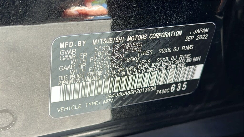 - Front tires: 255/45WR20.0