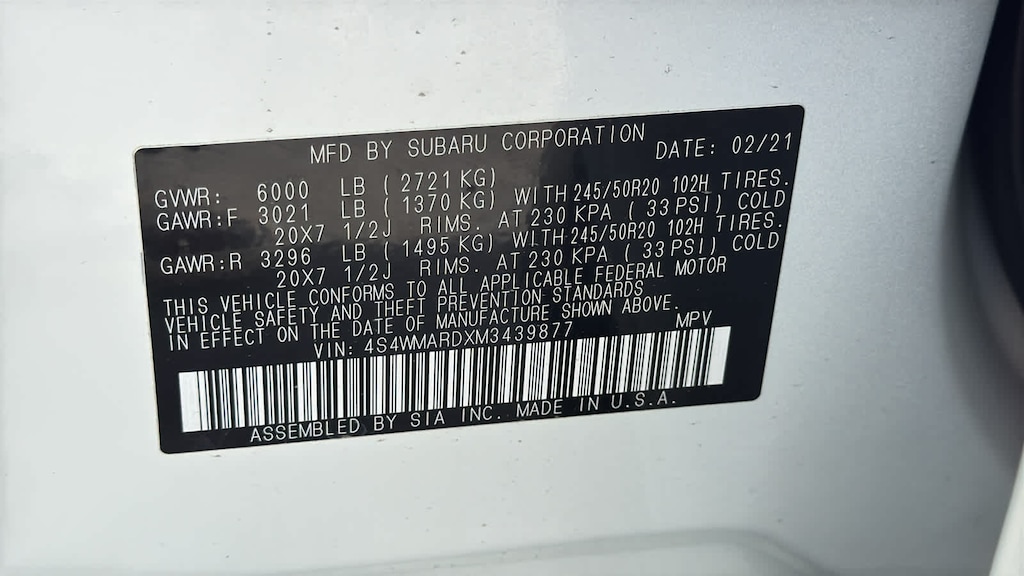 - Front tires: 245/50HR20.0