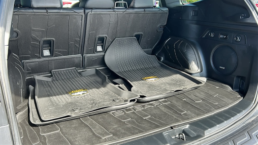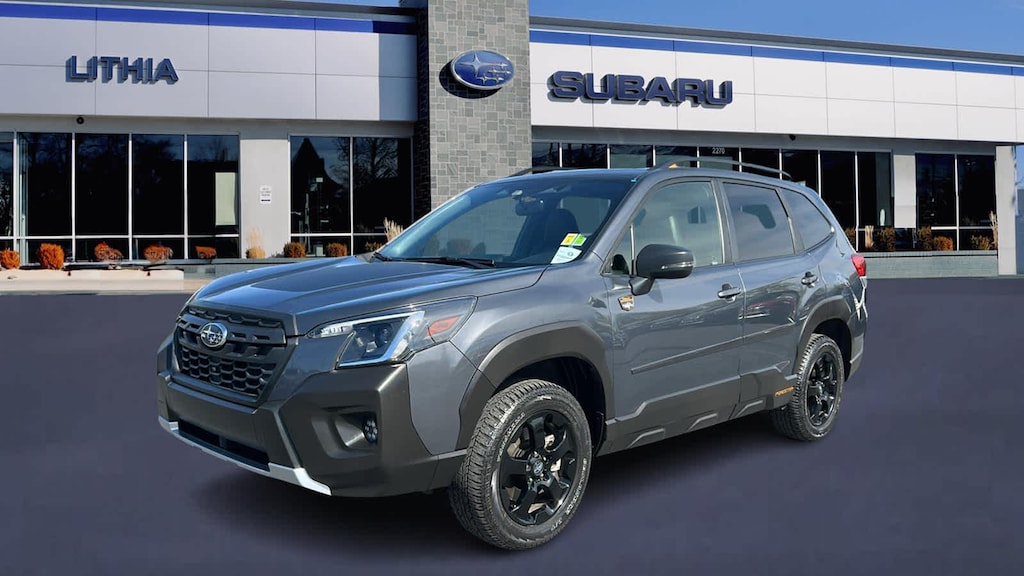 8 AUDIO W/harman/kardon® & POWER REAR GATE Power Rear Gate, automatic close and height memory, Radio: Subaru Starlink 8.0 Multimedia Nav System, AM/FM stereo HD Radio w/single-disc CD player, MP3/WMA/CRR/RW file capability, multi-touch gesture high resolution display screen, voice activated controls, Bluetooth® audio streaming, hands-free phone connectivity and hands-free SMS text messaging connectivity (refer to subaru.com for cell phone compatibility), Near Field Communication (NFC), iPod control capability, SiriusXM All Access radio (4 months free trial/subscription required after), smartphone integration for AHA, Android Auto®, Apple CarPlay®, Pandora and Starlink cloud applications (refer to subaru.com for app availability), USB and Over The Air (OTA) audio system update, steering wheel, TRAILER HITCH Part number L101SSJ005, AUTO-DIMMING MIRROR W/COMPASS & HOMELINK Part number H501SSJ000. Subaru Wilderness with Magnetite Gray Metallic exterior and Gray interior features a 4 Cylinder Engine with 182 HP at 5800 RPM*.