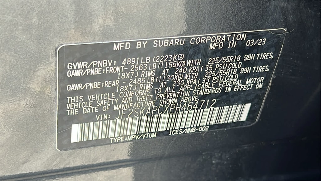 - Front tires: 225/55HR18.0