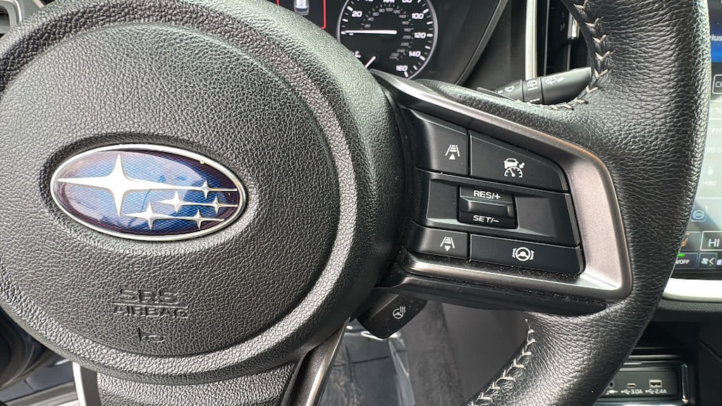TECHNOLOGY PACKAGE Retractable Cargo Area Cover, Crystal Black Power-Folding Exterior Power Mirrors, integrated turn signals, Panoramic Power Moonroof w/UV/Drk Tint Dual Glass, front tilt up and external retracting w/auto-open/close, power sunshade and rear fixed glass, Cabin Connect, Center Information Display (CID) integrated switch, Surround View Monitor System, Center Information Display (CID) integrated front-vision camera, integrated cameras in exterior power mirrors, rear-vision camera and on/off switch on front center console, Radio: Subaru STARLINK 11.6 Multimedia Nav System, AM/FM stereo HD Radio, multi-touch gesture high resolution display screen, voice activated controls for radio and navigation, Bluetooth® audio streaming and hands-free phone connectivity w/SMS text messaging, AERO CROSSBAR SET Aero crossbars do not support the use of roof top tents. Subaru Limited with Cosmic Blue Pearl exterior and Slate Black interior features a 4 Cylinder Engine with 260 HP at 5600 RPM*.