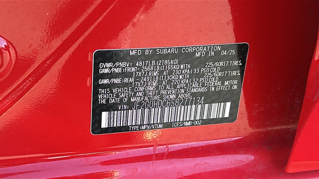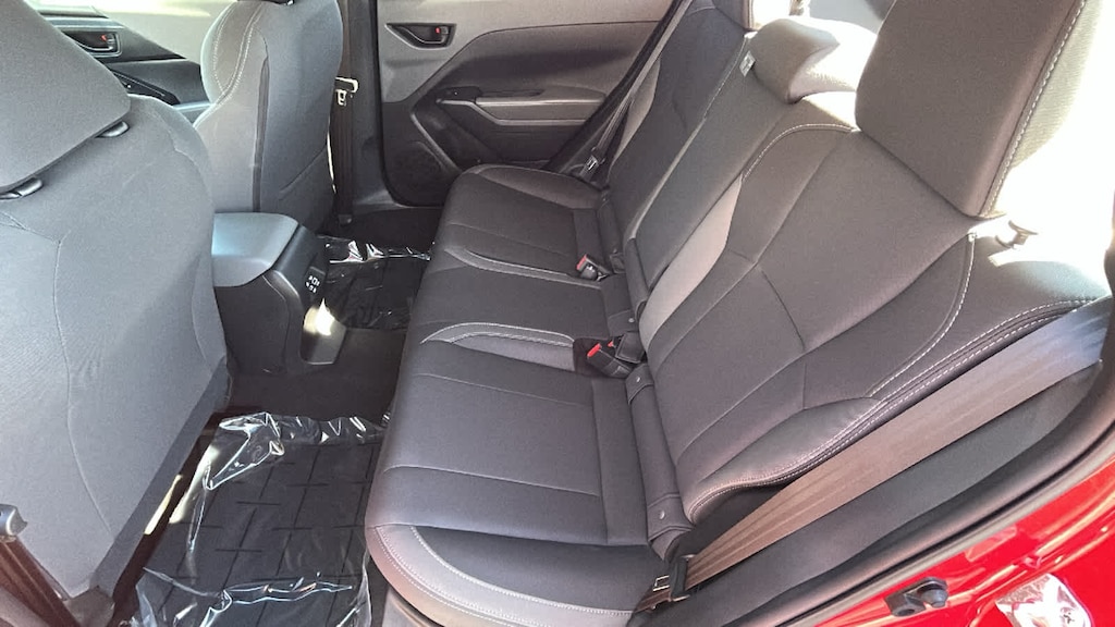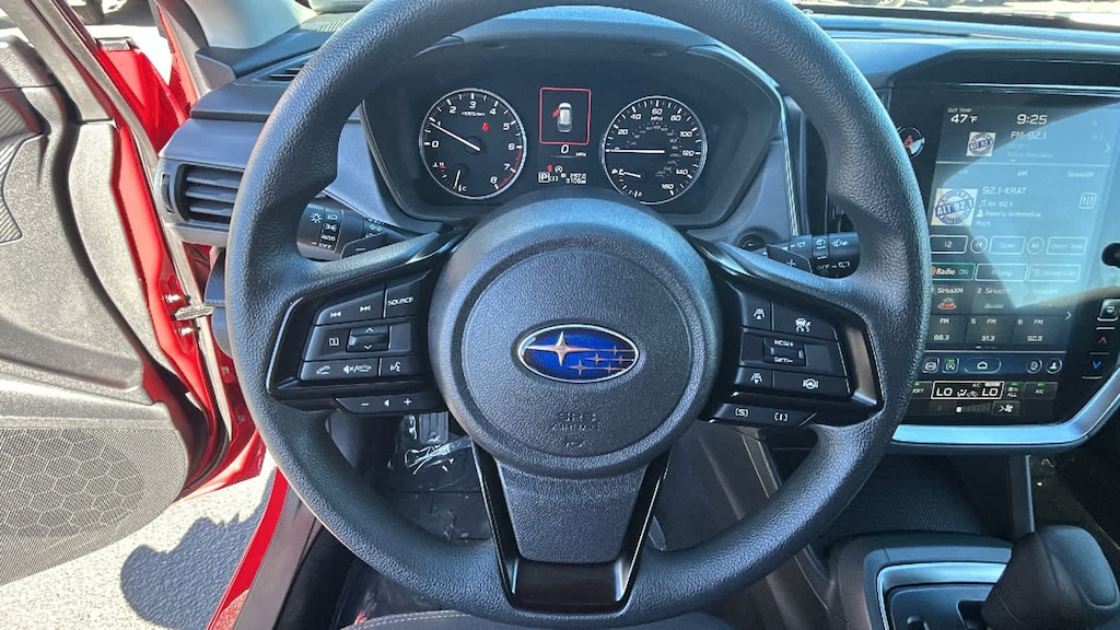 BSD/RCTA & ALL WTHR PKG & PWR DR. SEAT & PWR MOONRF automatic emergency steering, system off switch, BSD/RCTA detection indicator exterior power mirrors, rear radar detection sensors and lane change assist, Rear Cross-Traffic Alert (RCTA) System, off and malfunction warning indicator and audible vehicle detection warning, 10-Way Power Drivers Seat, 2-way lumbar support, Blind Spot Detection (BSD), All-Weather Package, Heated Power Exterior Mirrors, Dual-Mode Heated Front Seats, Windshield De-Icer Wipers, Power Moonroof, tilt up and internal retracting w/auto-open/close and laminated, UV and dark tint moonroof glass, AERO CROSSBAR SET, CARGO COVER. Subaru Premium with Pure Red exterior and Black interior features a 4 Cylinder Engine with 182 HP at 5800 RPM*.